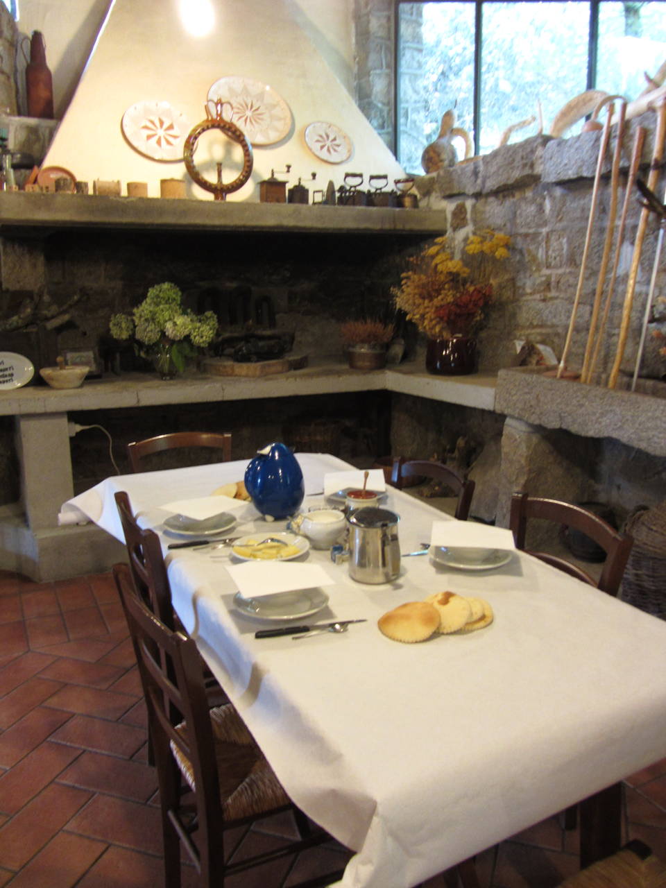 The farm is a brilliant argument for pulling yourself away from Sardinia’s beaches for a few days to enjoy the stunning mountainous center of the country. Sebastiano, the gracious owner and head cook has transformed the original compound of thick-walled family farm buildings into comfortable and spotlessly clean rooms, along with a dining hall. We stayed there with the express aim of doing nothing, but it’s also great base to visit surrounding hill towns, and much of central Sardinia is within daytrip range. The real reason you visit, however, is to eat.