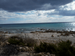 The Bidderosa Nature Reserve is located about 20 km north of Orosei in eastern Sardinia. It’s not enormous, but it contains beautiful coastal pine forests, a lagoon, and some of the most spectacular beaches we’ve ever seen. Azure water backed by pine trees and low red mountains, and none of the crowds or clutter seen on other beaches nearby.